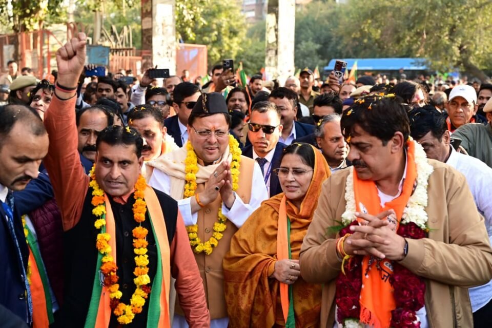 सीएम धामी ने पालम दिल्ली में किया भव्य रोड-शो